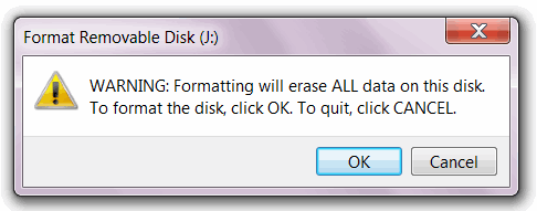 The alert warns that formatting will erase all data forever, and if you really want to proceed. Note: Always backup and remove data from the USB drive before formatting to your computer. NO data will be retrieved after formatting.